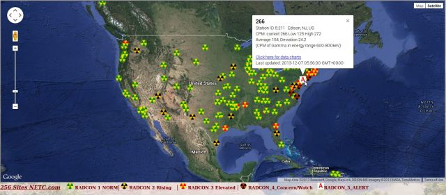 A RADCON 5 Alert has been issued in Edison, New Jersey as shown in the charts from the Nuclear Emergency Tracking Center - NETC. RADCON 4 warnings have also been issued from Virginia Beach, Virginia up as far North as New York. Is this more Fukushima radiation that has made its way across the Pacific Ocean and across America all the way to the east coast? This chart shares that not even the East coast of America is immune to Fukushima's radiation as Japan enacts their tyrannical 'state secrets law' to coverup the ongoing Fukushima disaster as shared in the 1st video below while the 2nd video shares how to protect yourself from this.